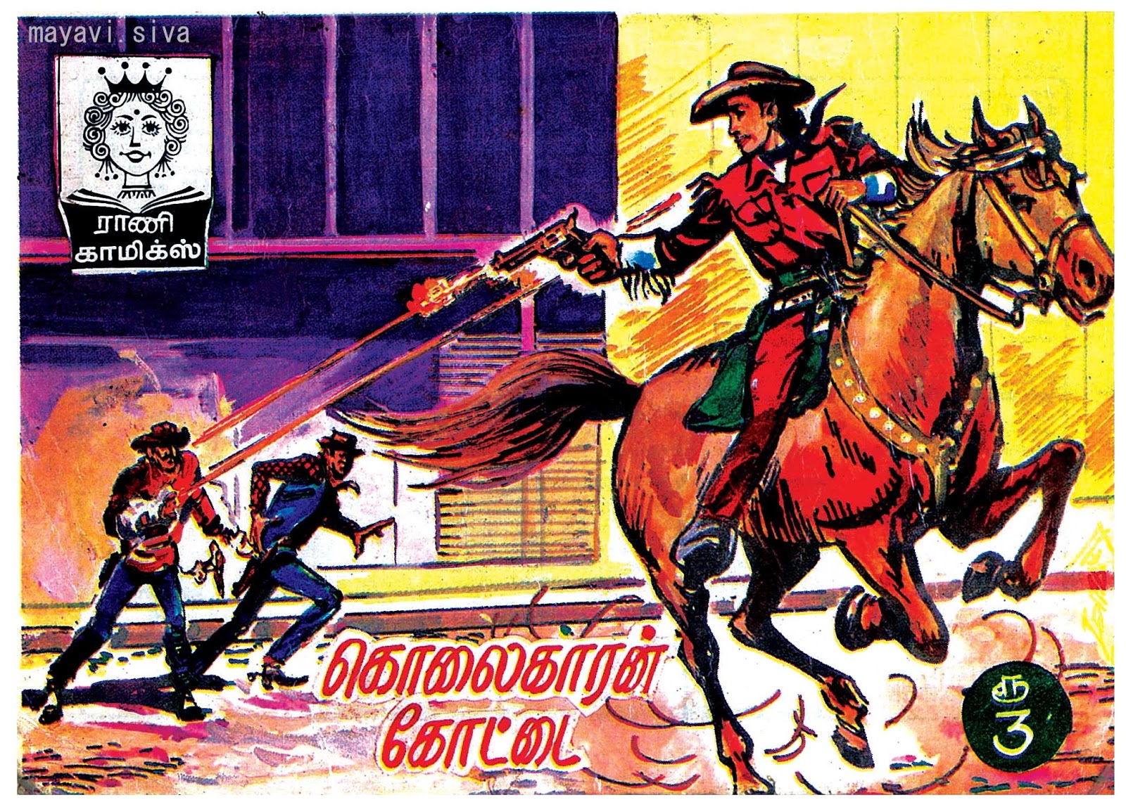 மறுபடியும் காமிக்ஸ். இம்முறை எனது முறை.கொடைக்கானலில் இரண்டே புத்தகக்கடைகள்தான் உண்டு.ஒன்று நீதிராஜன் புத்தகக்கடை, மற்றொன்று பேப்பர்கடை என்றழைக்கப்படும் புத்தகக்கடை. பேப்பர்கடைக்கு அப்பாவுடன் சென்ற எனக்கு ஒரு இன்ப அதிர்ச்சி காத்திருந்தது.அவர் எனக்காக ஆசையுடன் ஒரு காமிக்ஸ் புத்தகத்தை வாங்கித்தந்தார்.ராணி காமிக்ஸ்-ன் ‘கொலைகாரன் கோட்டை’ புத்தகமே அது.நான் படித்த முதல் கெளபாய் கதையும் அதுவே…!